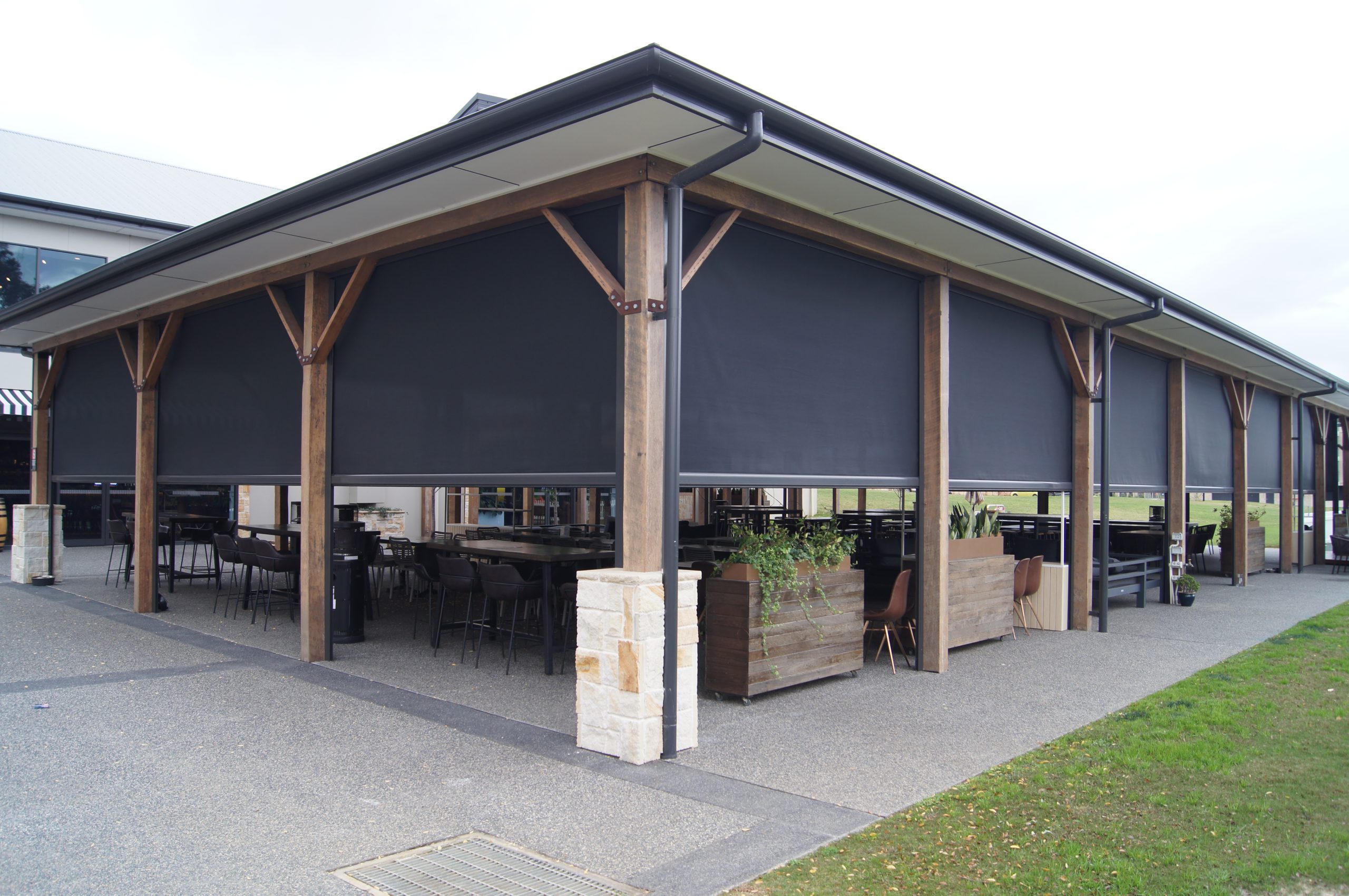 The restaurant Nineteen at The Vintage in Hunter Valley needed a way to allow their patrons to enjoy themselves outside without the harsh Australian Sun affecting them.Outlook Mode Privacy seems like an odd choice at first, considering the 1% openness for an outdoor area, however it’s perfect if people want to host private functions and events. They can be outside and still have privacy where needed.Mode Privacy has all the great features like the rest of the range, just with that added layer of visual security when you need it most.