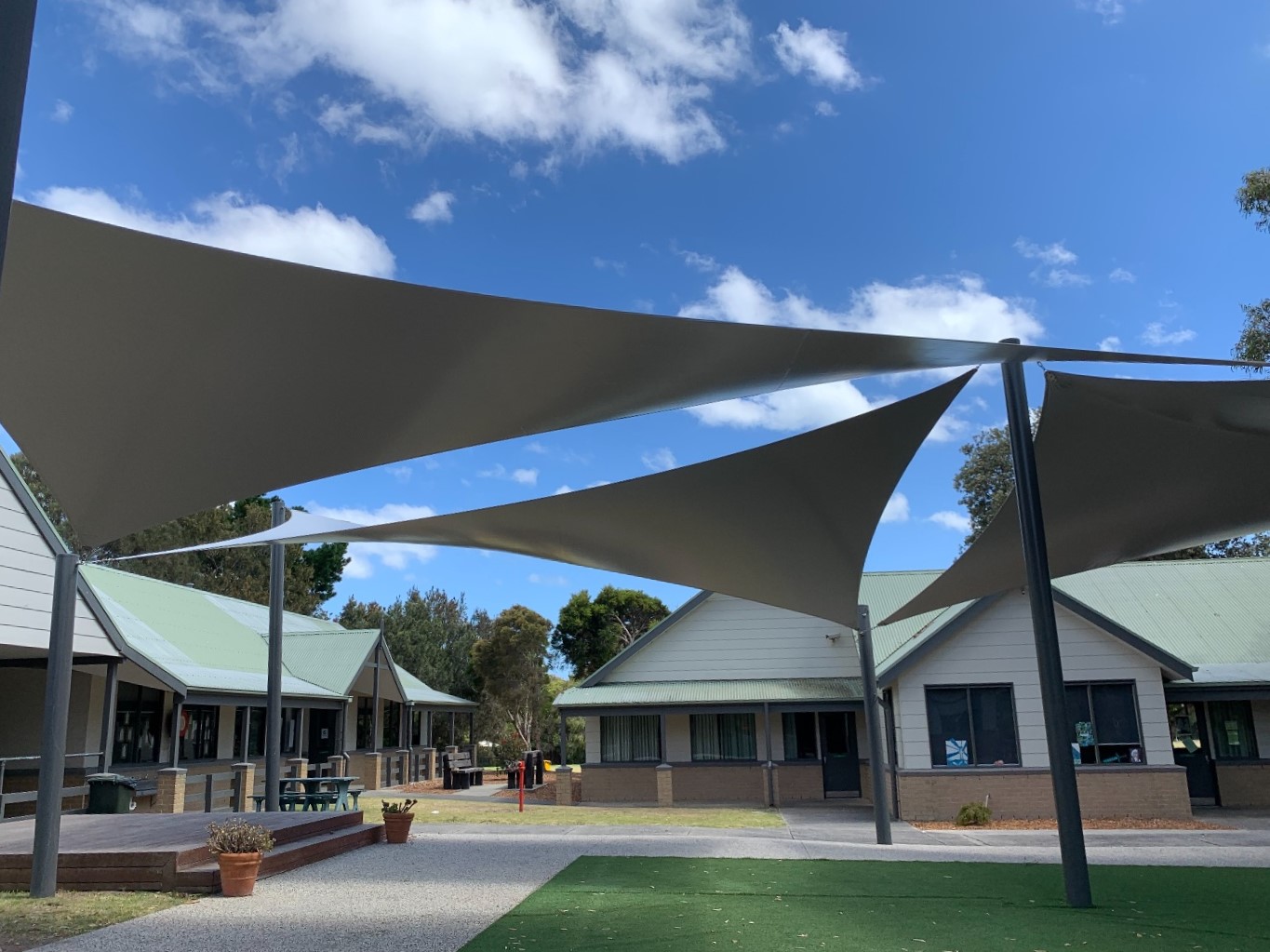 Padua College had existing shade mesh shade sails installed in their quadrangle courtyard, however there was a requirement for year-round adequate/additional outdoor coverage as this area is used as an outdoor performance space. Padua reached out to Peninsula Shade Sails to develop a shade solution for the space.The customer was seeking a durable and weather-resistant shade design that would offer shelter and protection for students regardless of the season. Peninsula Shade Sails recommended the use of Bochini Tensile Structure Fabric as a quality lightweight waterproof option, so the outdoor performing area is able to be utilised all year around. The extra wide roll width also proved advantageous, resulting in fewer seams and reduced waste.The customer selected Bochini in the colour Shale Grey to align with the school’s neutral tones and natural surroundings, while also matching the Colorbond Woodland Grey powder coated structural columns.A big thank you toPeninsula Shade Sailsfor sharing this project with us. Check out theirWebsiteandInstagramfor more content!